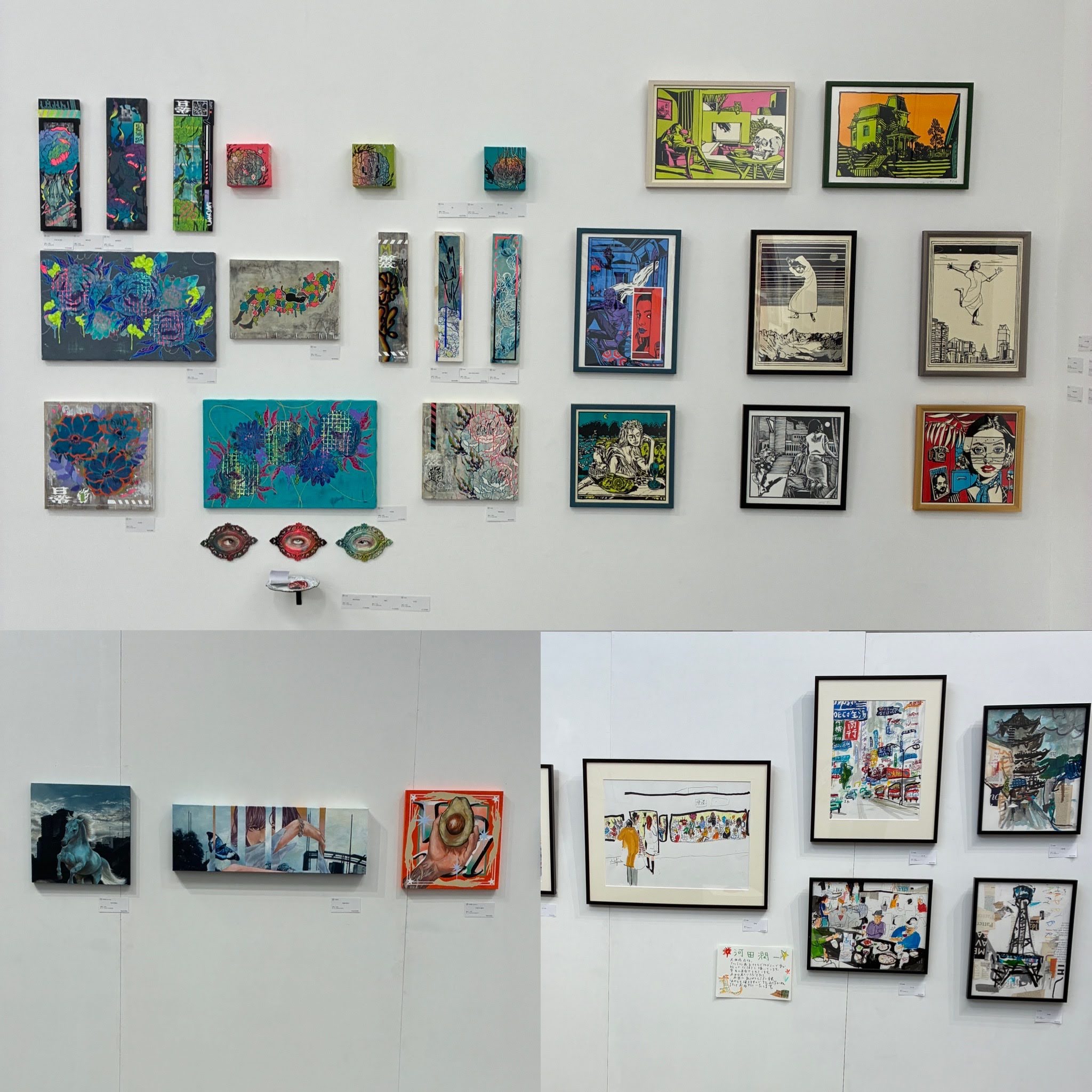 本年の出演アーティストは絵画、イラスト、ソフビ、写真、アートブックなど多彩で、関西の現代アートシーンを牽引する作家たちが勢揃いしました。代表的な出展者には以下のような方々が名を連ねました:紀光/有柚まさき/ants/Satomi Imura/岩佐浩明/岩本紀羽/上田バロン/ウラタスパンコール/emma(絵馬)/えりつぃん/岡田将充(OMD)/Kaz Oomori/オクノブユキ/ALICE OZAWA (.A)/尾も白い(尾花大輔・白澤真生)/かなまる。/河田潤一/キツネツキ/こうす系/コージー・トマト/小瀬古智之/小瀬古やふぁ/後藤芳貴/Sayaka Kondo/坂口拓/ryosawai/宍戸克成/simo/Juicy/しゅんき/SHIRACO WORLD/SilSil/THRREE/千道/sota/高田雄平/タカハシユリ/高本洋志/滝本章雄/谷正輝/TURBO/玉住聖/玉置哲也/地域似顔絵師yana/辻 孝文/辻野清和/tsumuji/亭島和洋/てりィ’S Factory/TOUMA/豊島舞/10rc0/中島尚志/ナカジマユウコ/masaki nakamura/Natsumi/ネルノダイスキ/823 hatsumi/ハブチユウスケ/HARUTO/hitch/藤野ゆきこ/振本聖一/ふるやみか/ポピー中土井/前田茉里/正井 真梨奈/マシュキン/増澤香乃/松野和貴/まるゐ/marco/ミゾバタサキ/ミヤザキコウヘイ/ムネアツシ/元てらひら/ヤマカワユウジ/山口留美惠/山本神恵/YANG YANG/YUHEI/SYURI YOSHIDA/YOHEYY/Living Ops./Rim/ロケット・ジャック/わにぶちみき